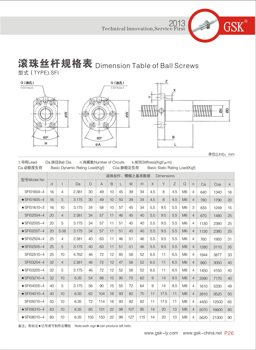 SFI螺帽型滾珠絲桿