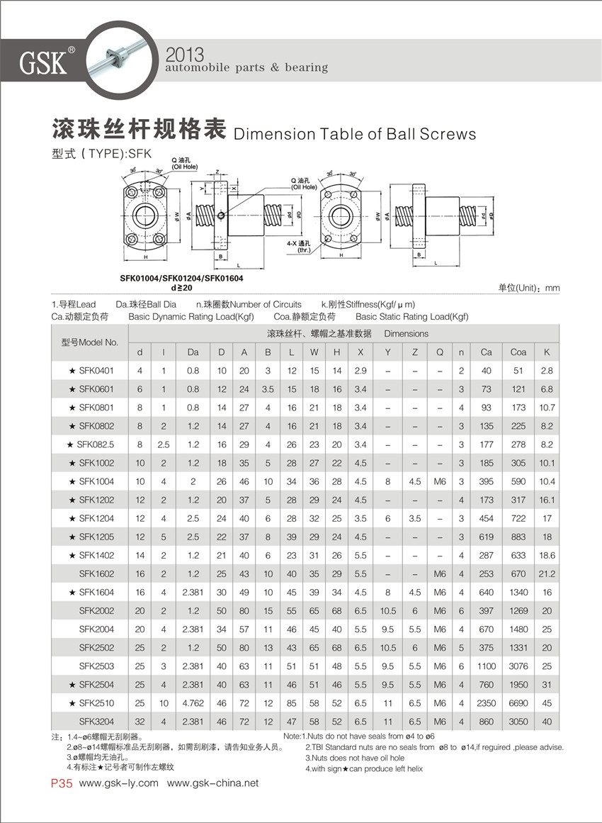 SFK螺帽型滾珠絲桿